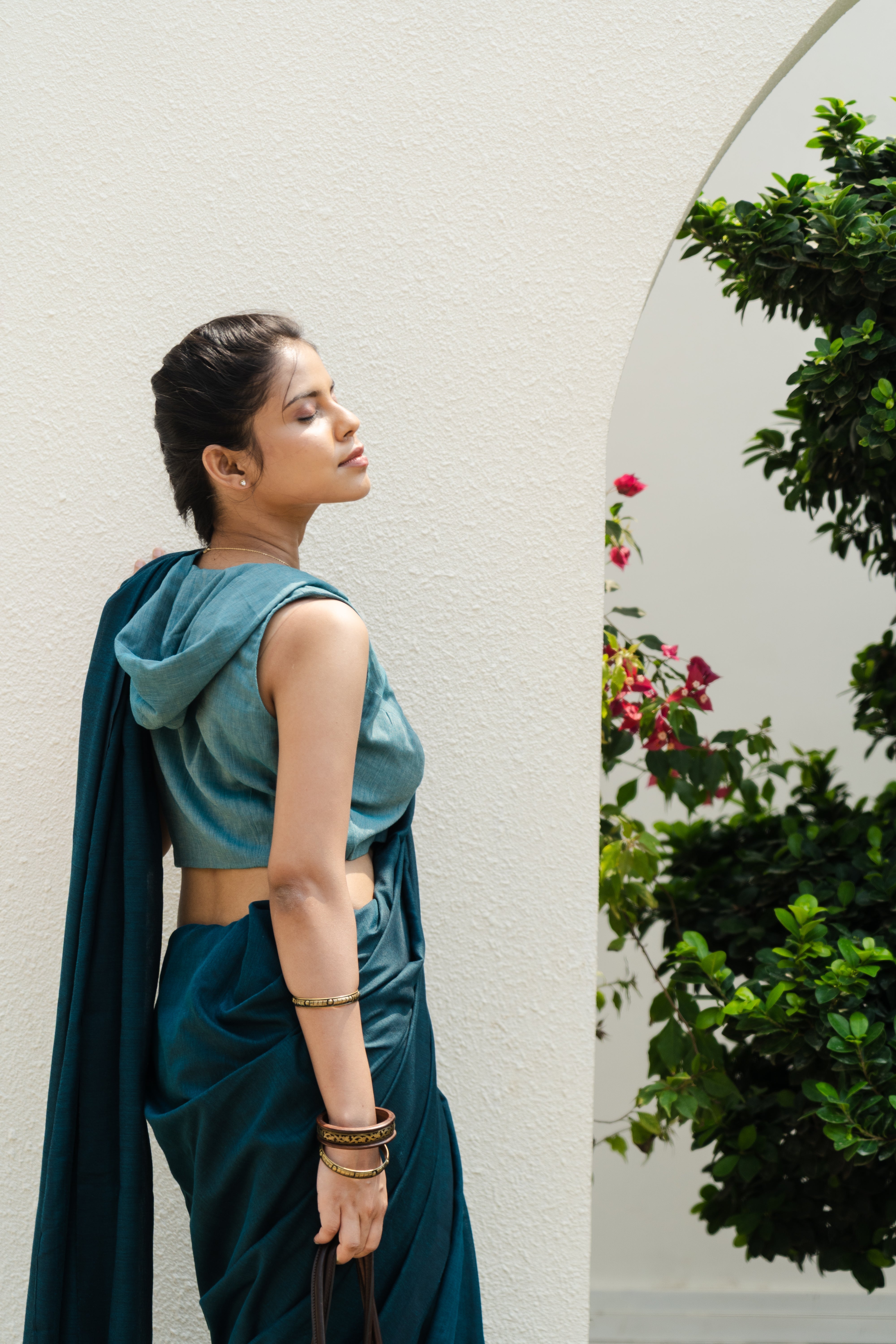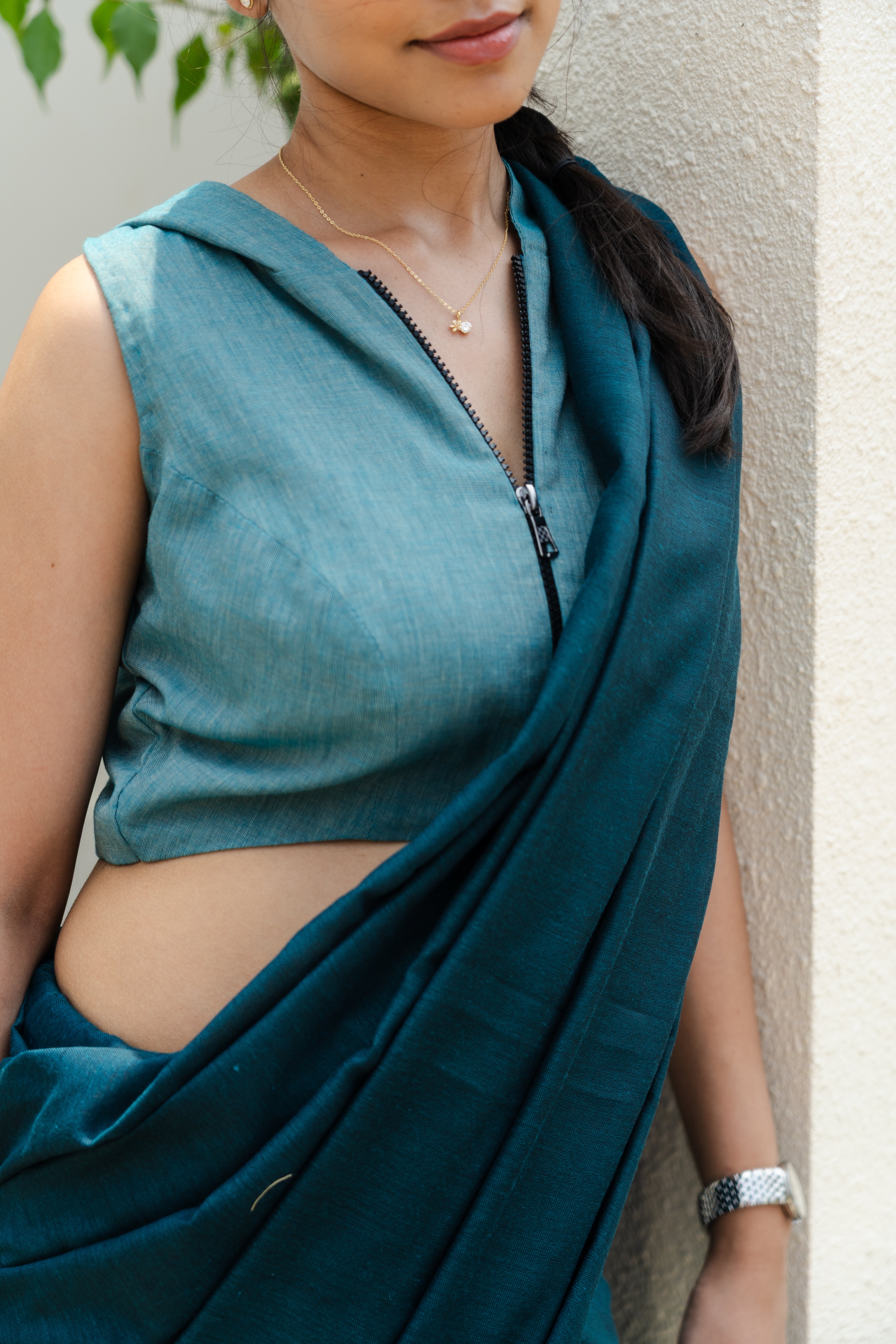 "A Feather lite sleeveless hoodie blouse in Teal Ocean"